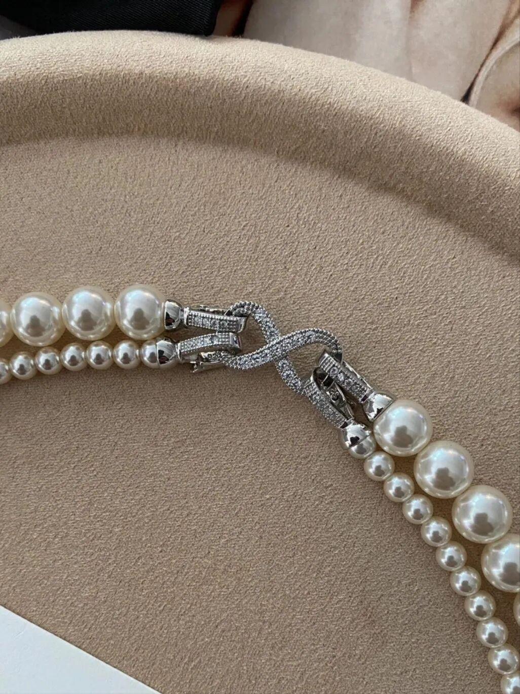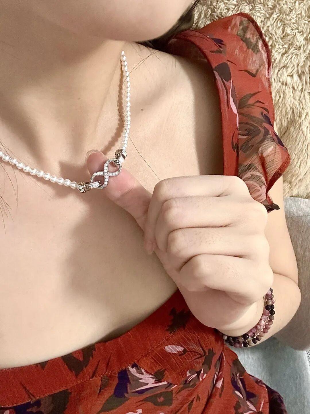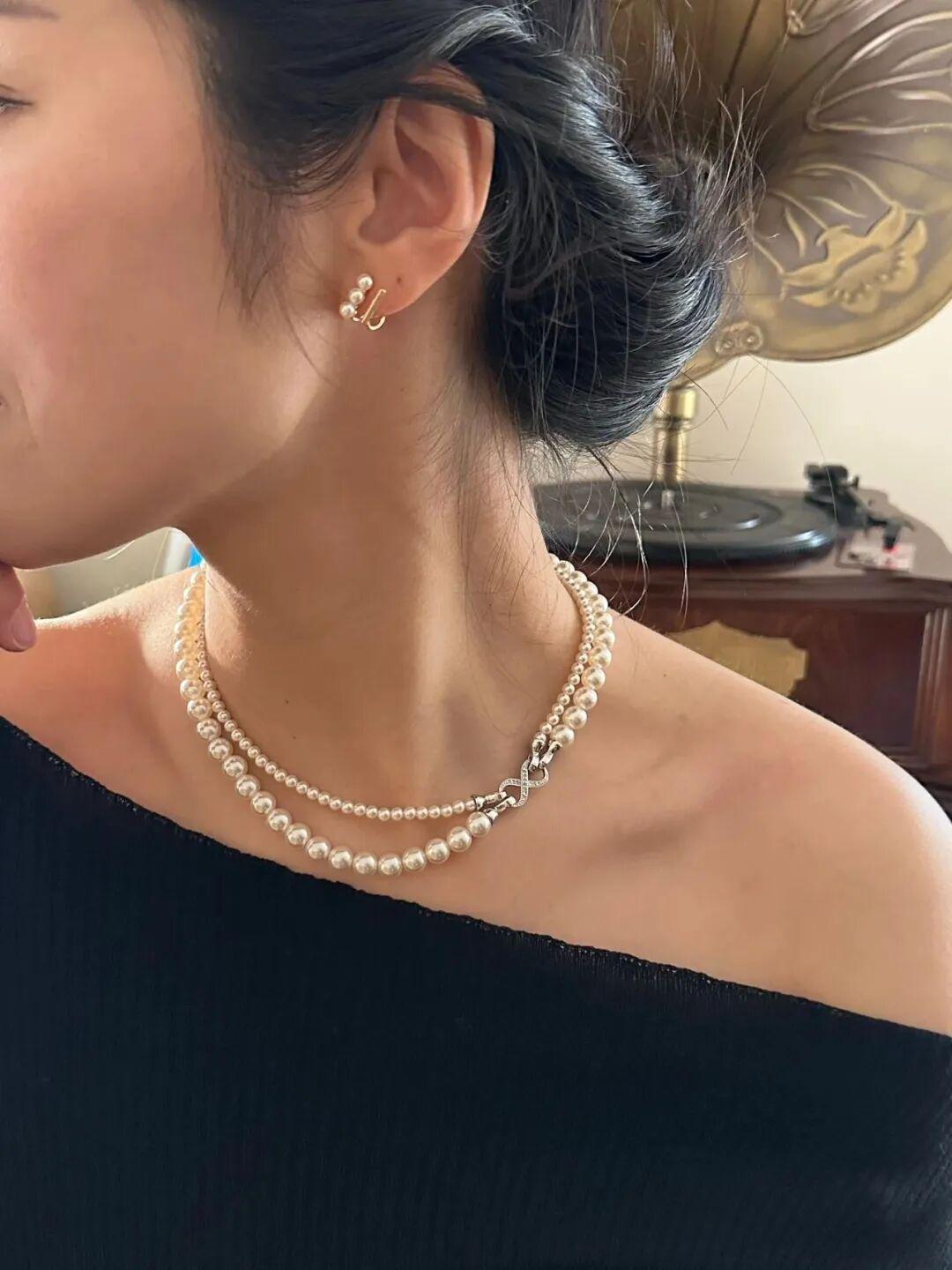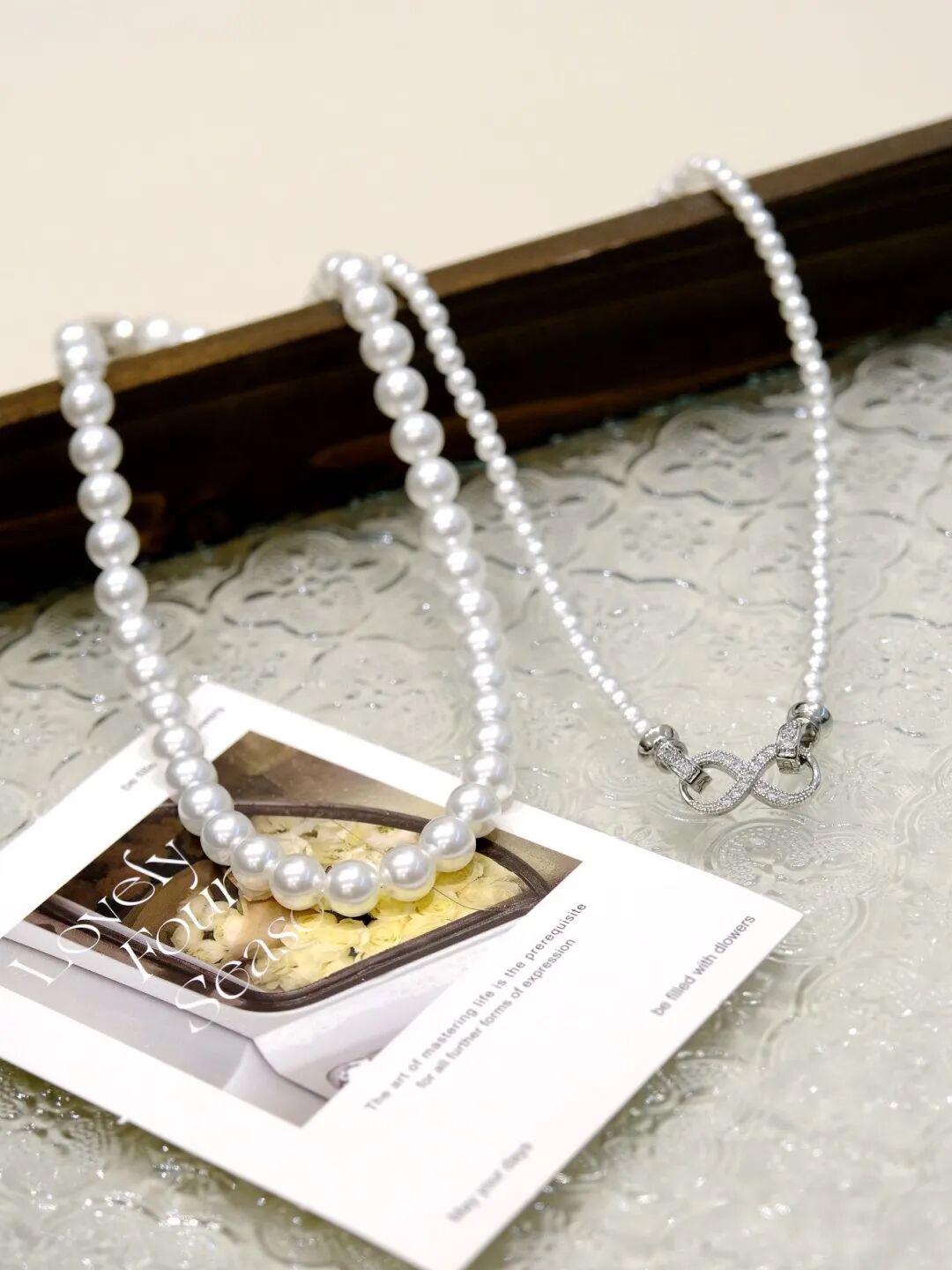 可盐可甜~n种戴法 四季可戴 非常百搭的双层珍珠项链 万能8字扣的设计,超级实用 可以拆分成两条8mm和4mm单独戴 两条连起来还可以做长款项链