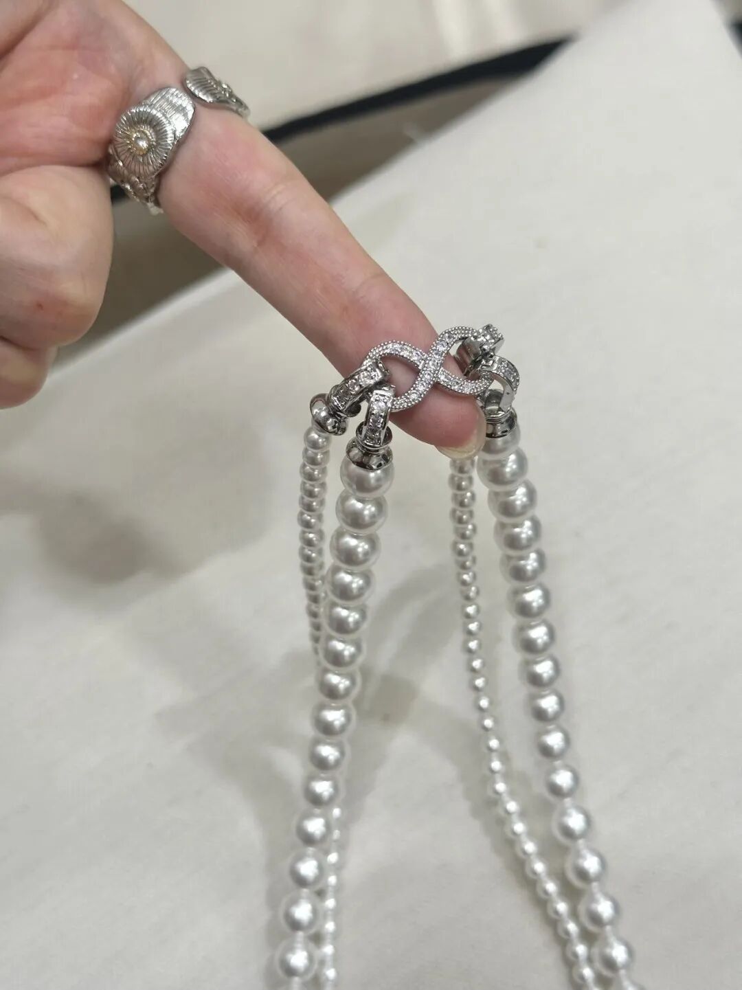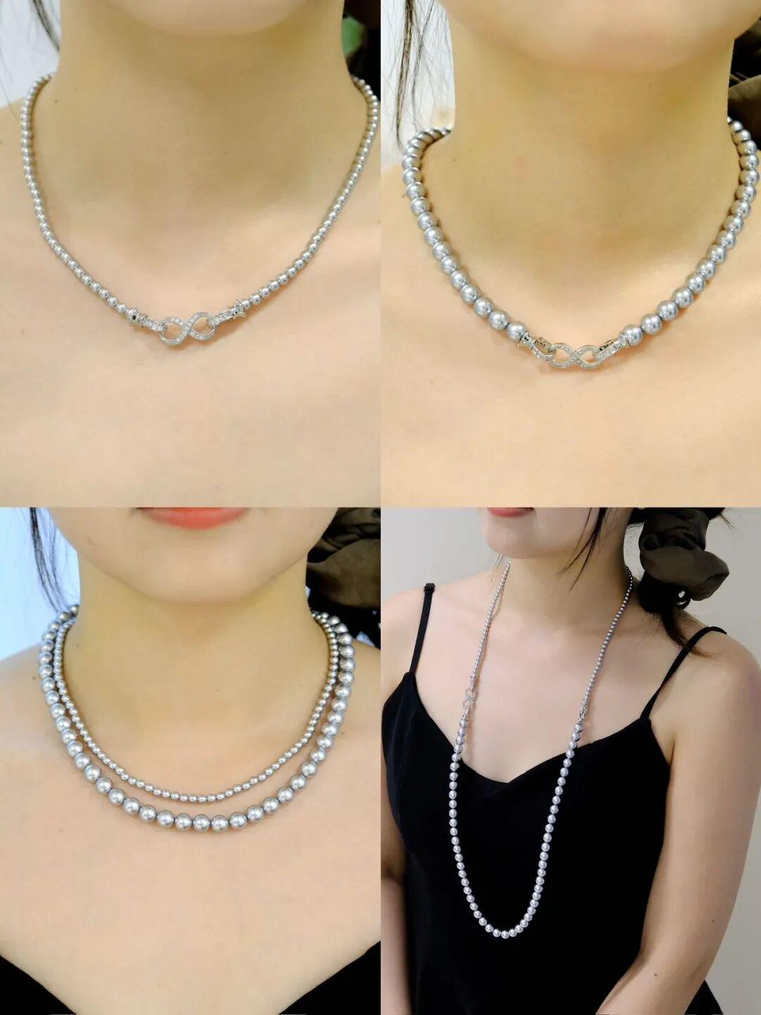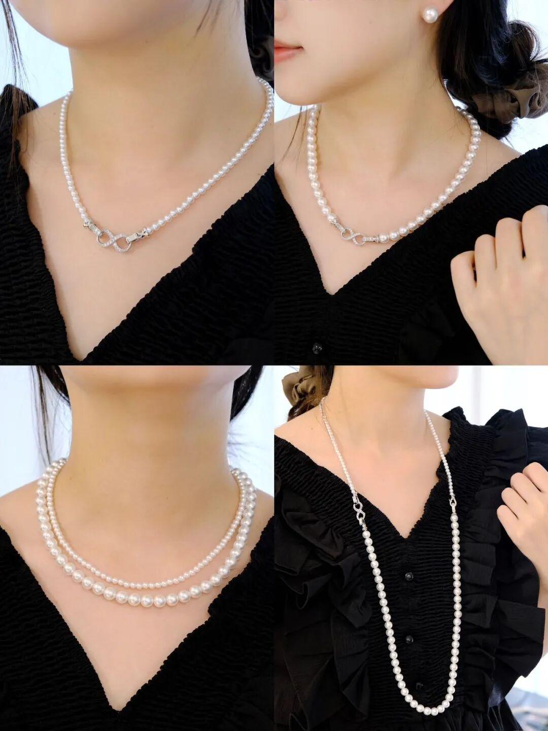 可盐可甜~n种戴法 四季可戴 非常百搭的双层珍珠项链 万能8字扣的设计,超级实用 可以拆分成两条8mm和4mm单独戴 两条连起来还可以做长款项链