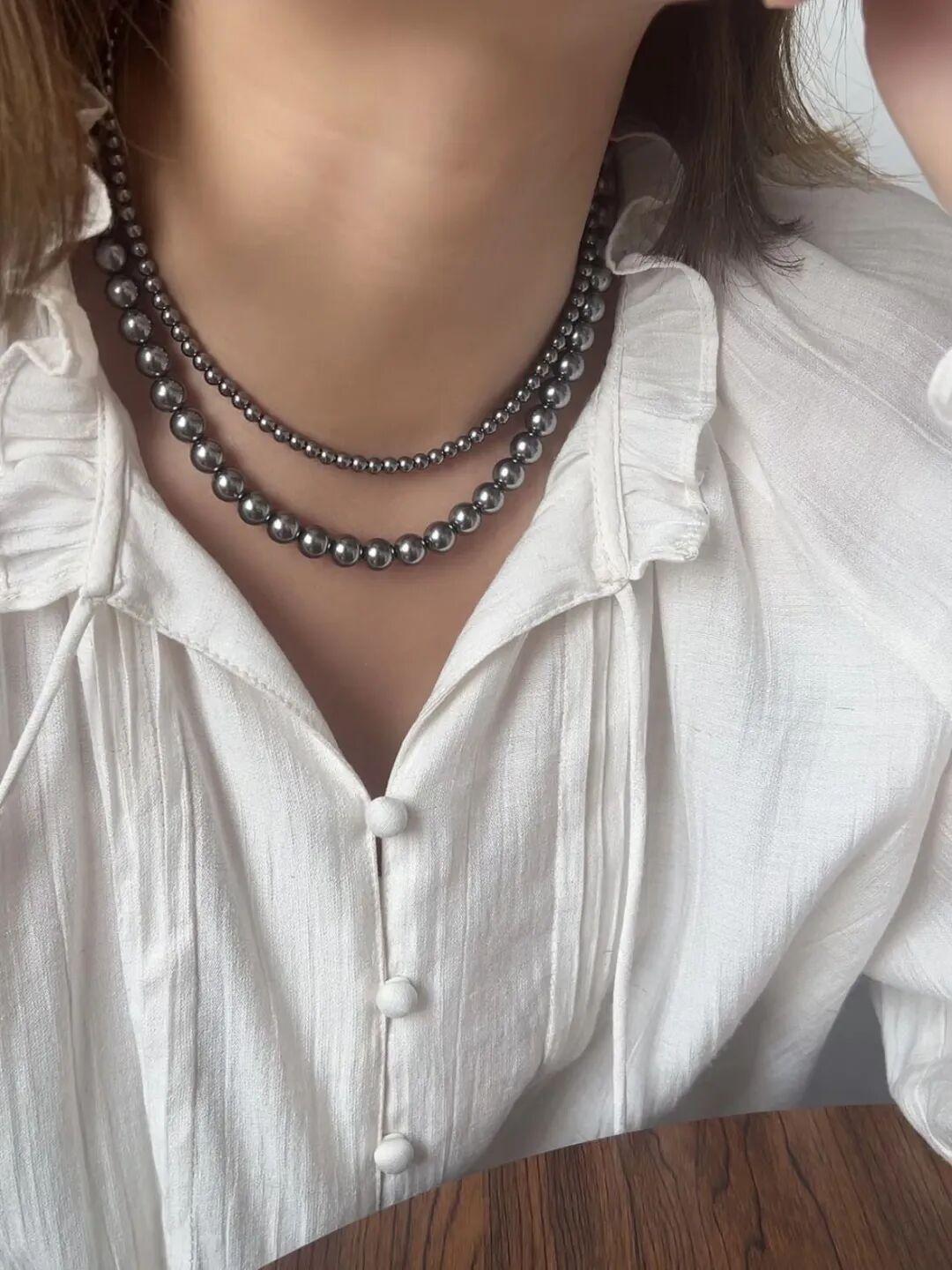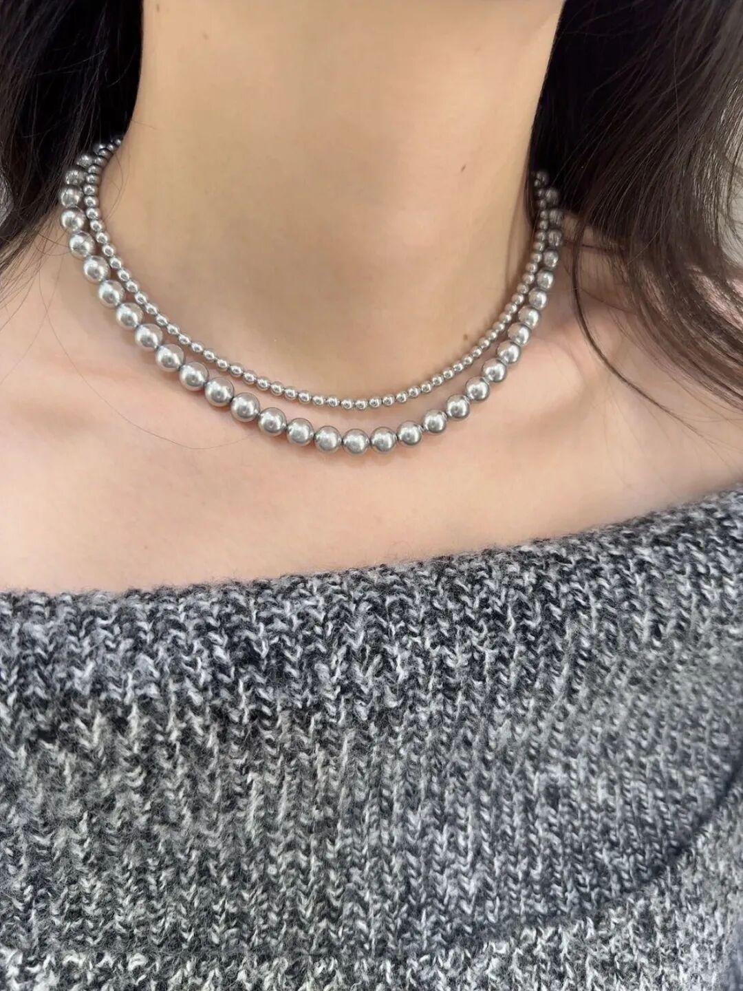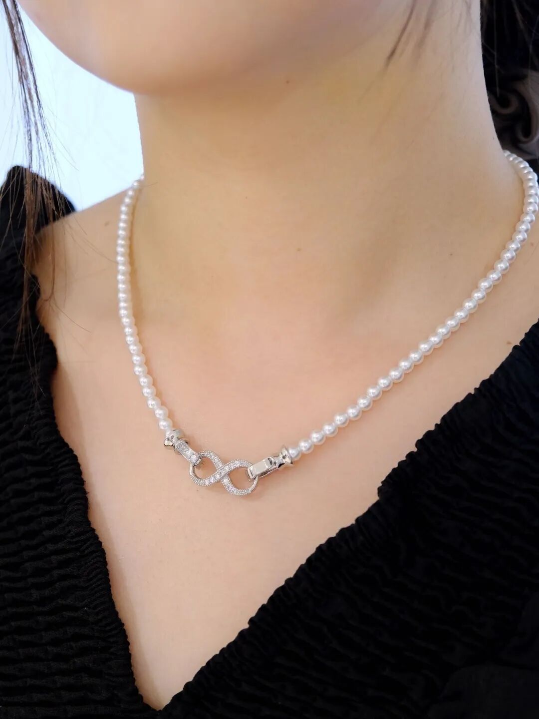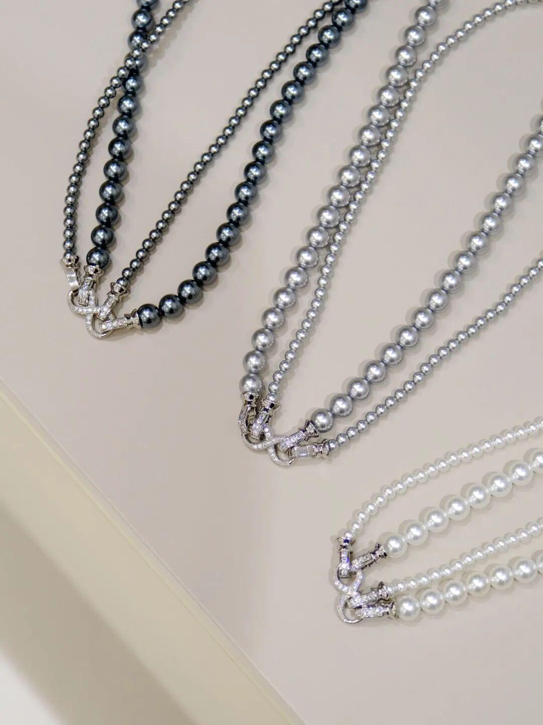可盐可甜~n种戴法 四季可戴 非常百搭的双层珍珠项链 万能8字扣的设计,超级实用 可以拆分成两条8mm和4mm单独戴 两条连起来还可以做长款项链