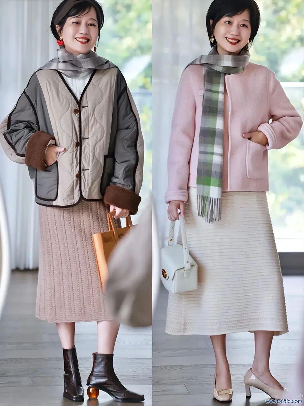 比如衣柜里必备的纯色针织衫、直筒半身裙、纯色羽绒服,这些单品永不过时,选款时则需要重点看面料,轻轻松松穿出显贵感。