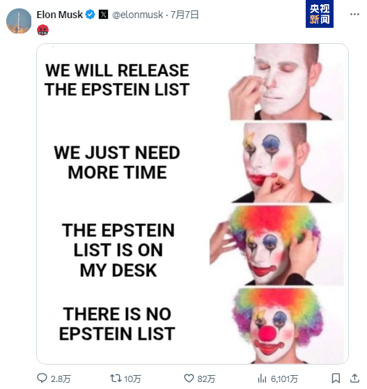 当地时间7日,在美国联邦调查局及司法部公布结论后金领速配,马斯克在X上发布一张小丑形象的梗图,回应美司法部对爱泼斯坦案的表态。