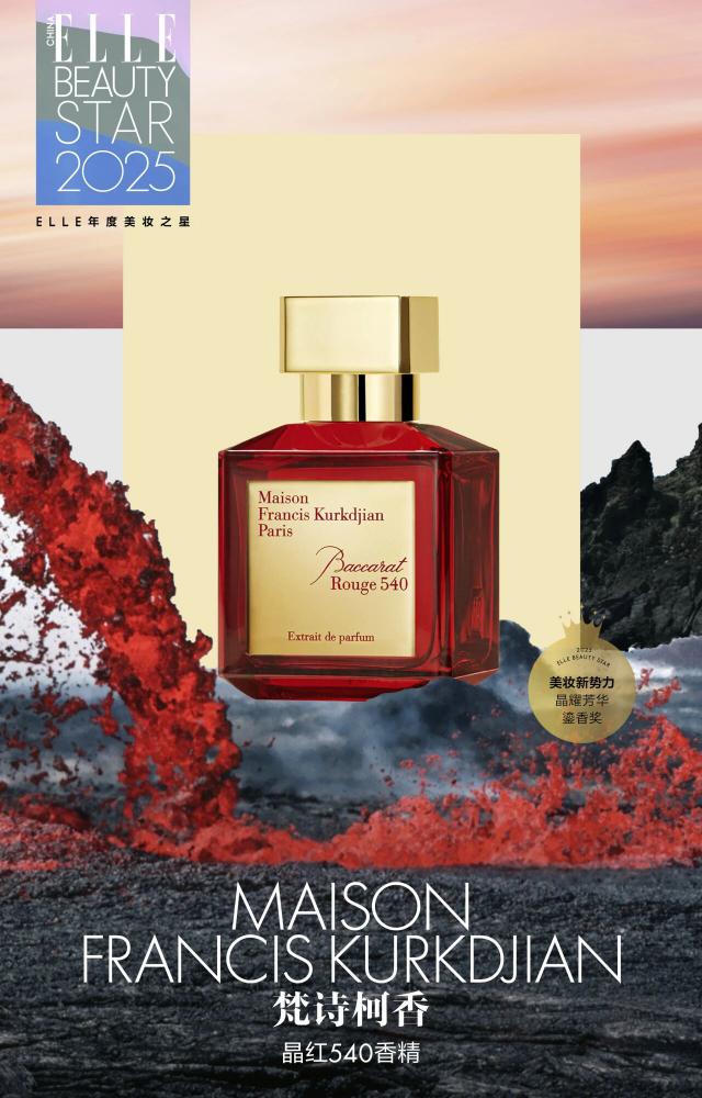 灵感源自巴卡拉品牌标志性红水晶在540℃高温下熔炼成色的传奇工艺。晶红540以三重气韵诠释水晶的浓厚质感与通透灵性,以琥珀木质花香调为核心,巧妙融合龙涎香和琥珀的矿物气息,再点缀藏红花的甜暖火焰感,最后轻盈茉莉悄然浮现赋予呼吸灵动轻盈。瓶身设计璀璨如红水晶,诠释着奢华与感官的艺术共鸣。