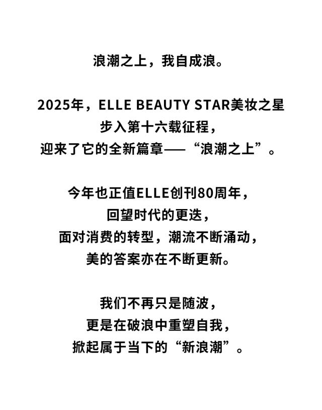 作为中国美妆界首个权威奖项,ELLE美妆之星自创立以来,一直坚持以破浪精神与识浪卓见,以「造浪者」之姿在美妆浪潮中表彰真正值得关注和推崇的美妆产品。十六年来,无数"爆款"诞生于ELLE美妆之星大奖,分享和记录始终是我们不变的信念。
