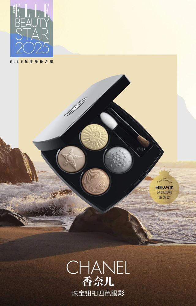 以品牌高级定制服的经典元素——珠宝钮扣为灵感,将时装符号化作眼妆艺术。四色眼影交织珠光与缎光质地,色调饱满柔和,赋予双眸珠宝般璀璨光泽。每颗钮扣皆象征一段风格故事,从柔粉到金铜、从山茶花到星河,诠释女性的多面魅力与自信姿态,是装点与收藏的美容臻品。